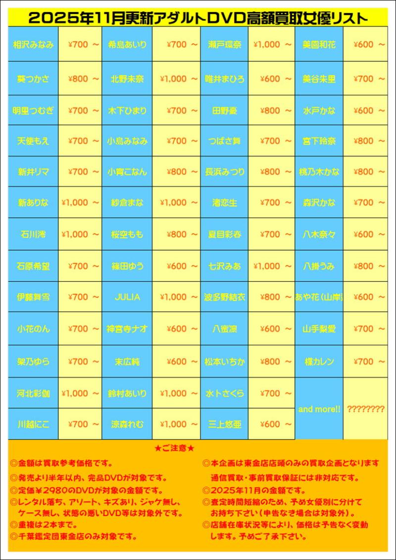 ◎査定時間短縮のため、予め女優別に分けてお持ち下さい(申告なき場合は対象外)。