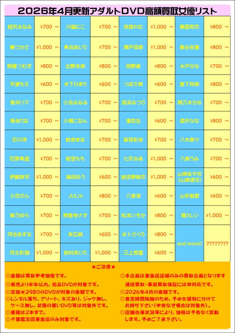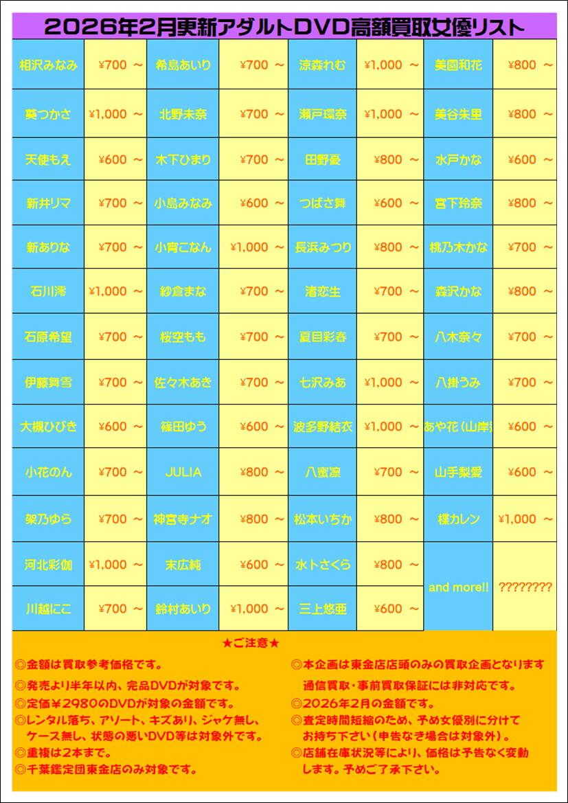 ◎査定時間短縮のため、予め女優別に分けてお持ち下さい(申告なき場合は対象外)。