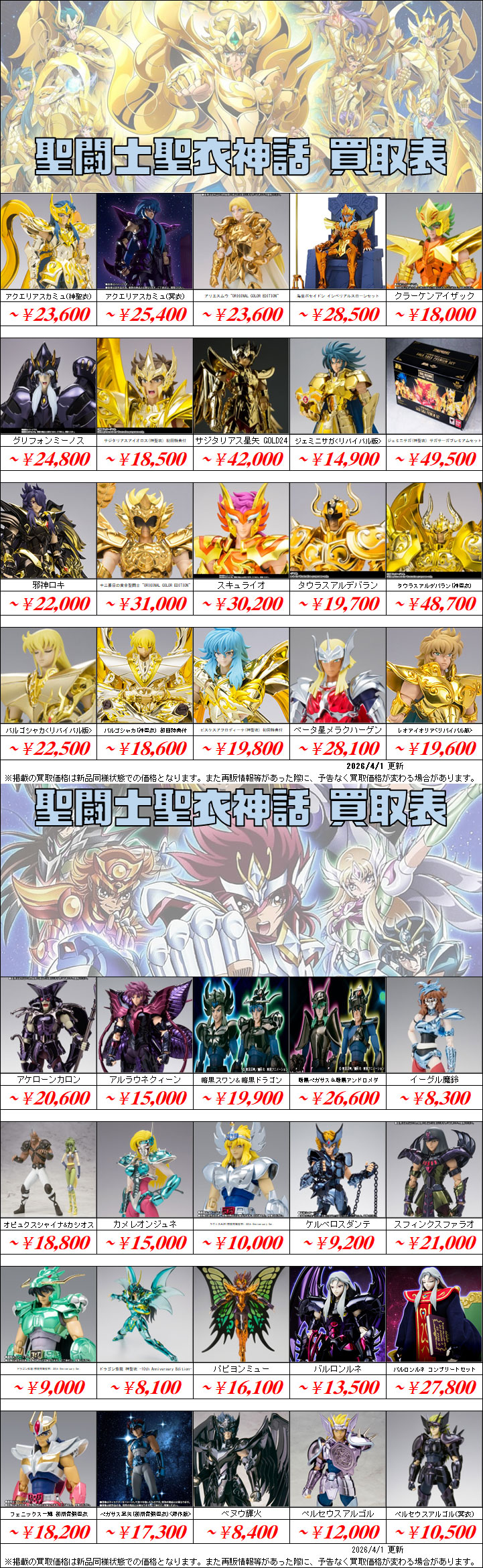買取表更新日:2026年4月1日